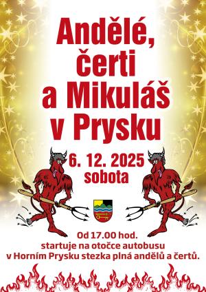Přijďte 6.12. s dětmi na tradiční stezku plnou andělů a čertů, start v 17:00h na otočce autobusu v Horním Prysku
